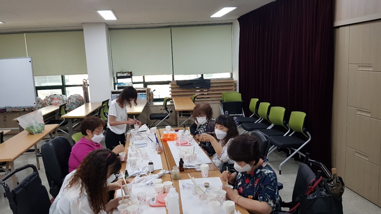여성장애인들의 친정 같은 곳 대전 여성장애인연대 강의실에 모여 천연비누 만들기를 하였습니다.
