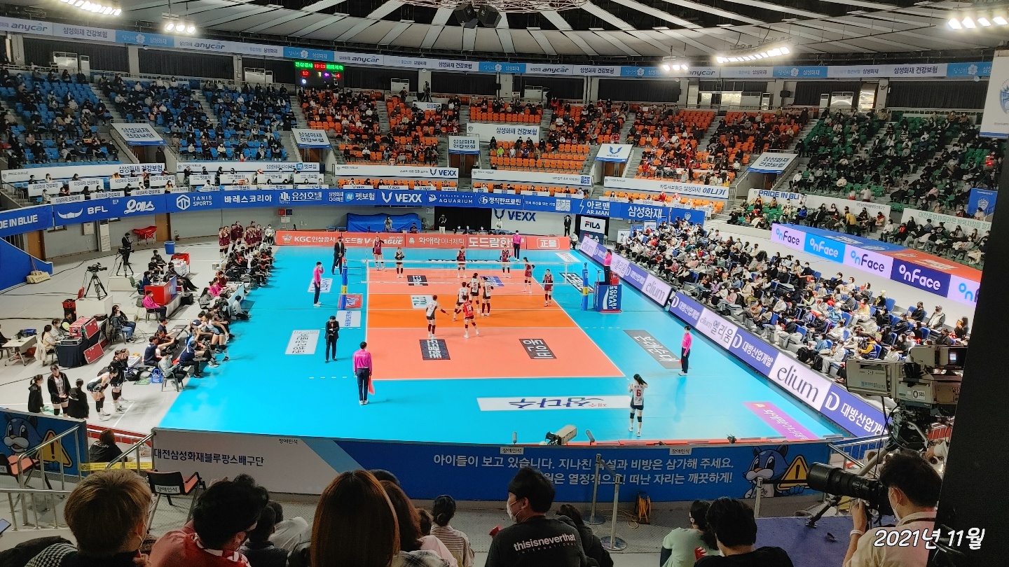 아이들과 여자 배구 경기를 보러 갔습니다. 오랫만에 가족들과 함께 움직였습니다. 생각보다 사람들이 많이 있었습니다. 응원종이가 다 닳아질때까지 열심히 응원하며 스트레스를 풀고 온것 같습니다.