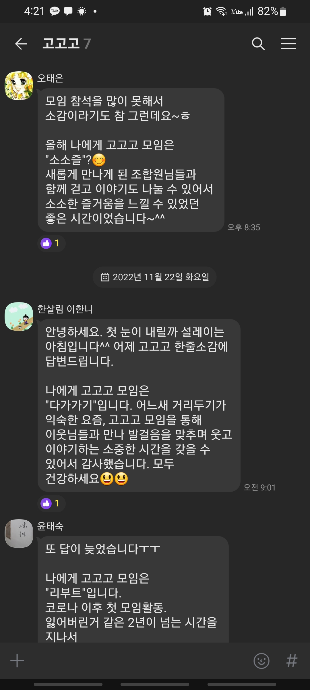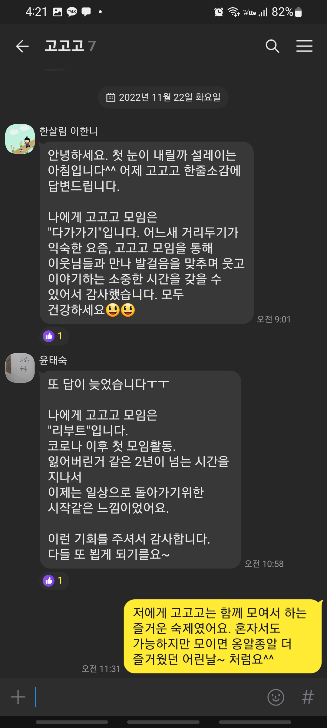 톡으로 나에게 건강반은 ×××이었다! 한줄 소감으로 활동을 대신했어요.