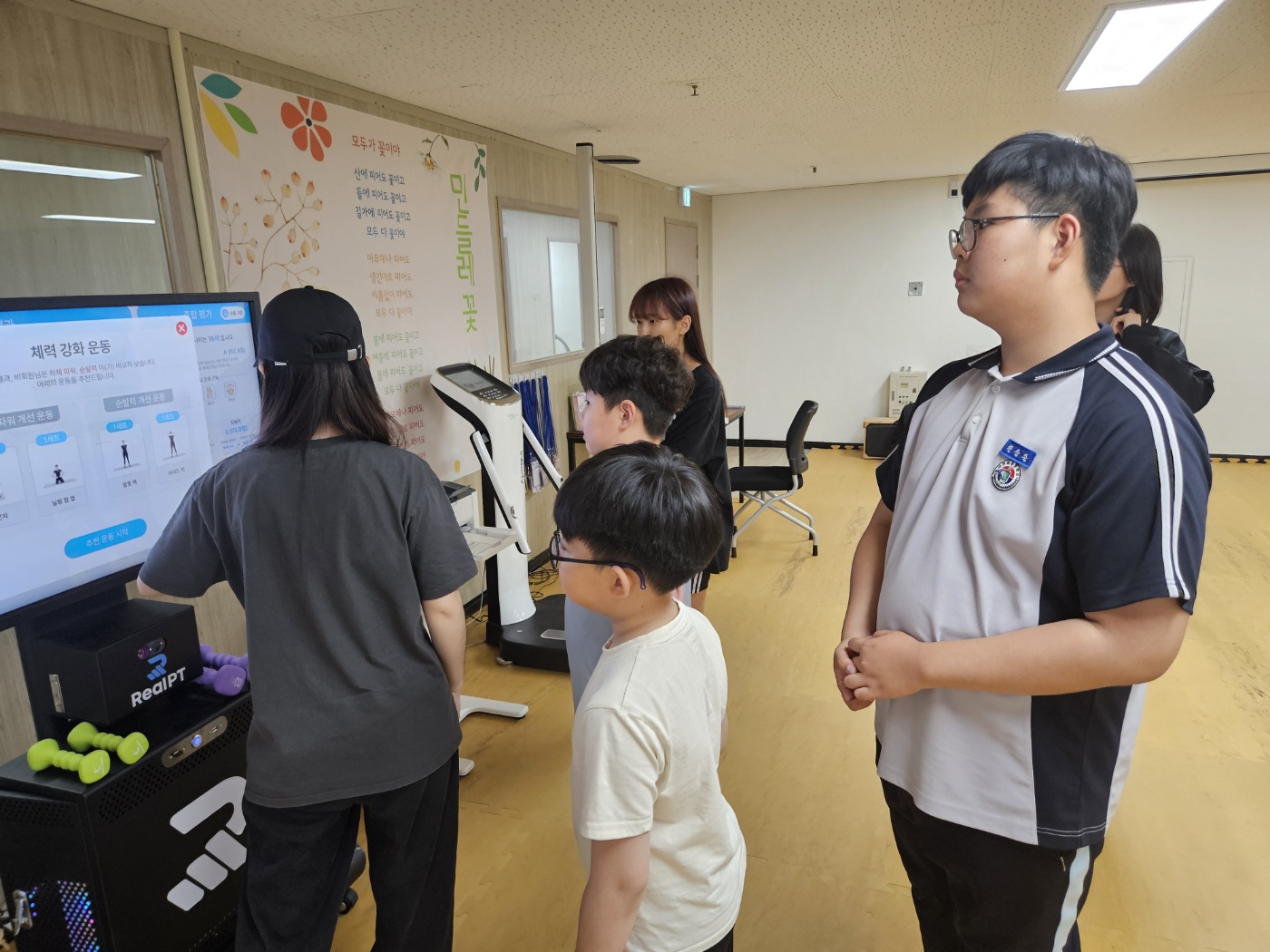 건강반 활동을 위한 체력측정. 사후추가 측정을 위해 기능향상을 확인할 예정.