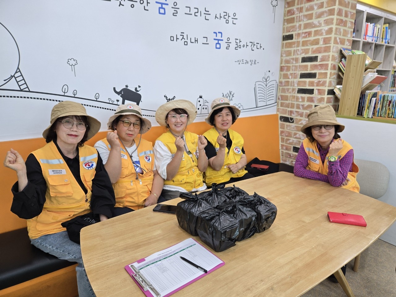 매주 화요일에는 적십자 상징인 노란 조끼를 입고 활동을 합니다. 존중하며 건강하게 대상자집을 방문을 해 면담도 하면서 일일이 대상자를 살피고 있습니다